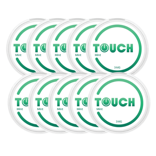 Touch Mint พร้อมให้คุณเลือกซื้อในแพ็ค 10 ตลับสำหรับผู้ที่รักรสชาติของมิ้นท์ที่สดชื่นและเย็นสบาย (ซอง)ถุงนิโคตินที่ปราศจากยาสูบเหล่านี้ให้ความรู้สึกที่มีความเข้มข้นปานกลางเหมาะสำหรับการใช้งานในชีวิตประจำวัน